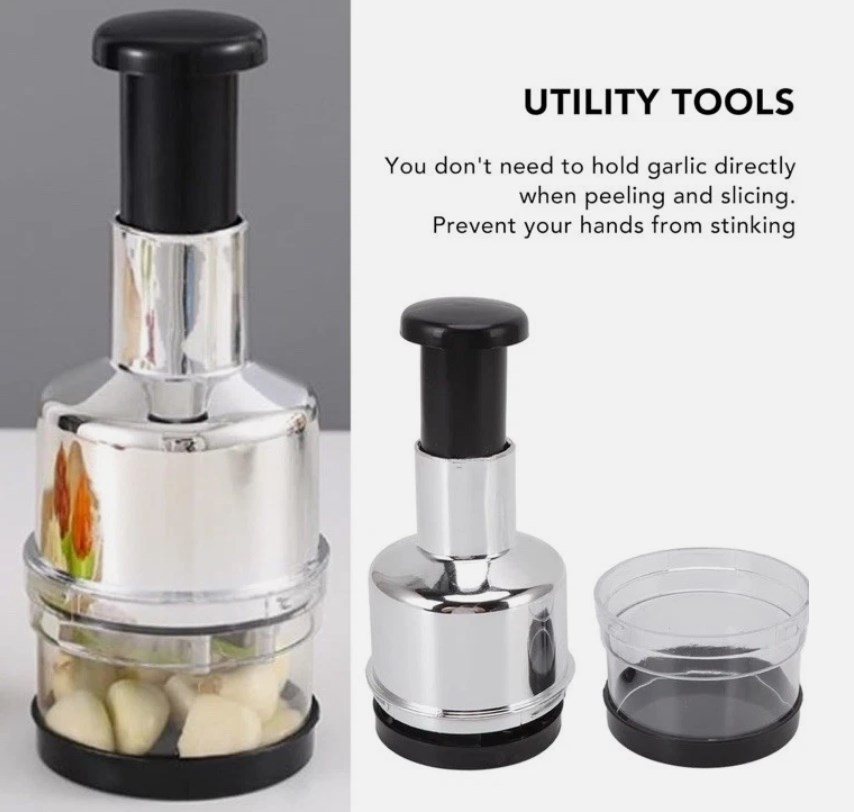 The Onion Vegetable Chopper is a manual slicer made of stainless steel, designed specifically for chopping vegetables, particularly onions. It features a simple compressor making method, making it easy to use for quick and efficient food preparation. The set includes one chopper, perfect for slicing onions with ease and precision for various recipes. This handy tool is ideal for home cooks looking to streamline their food chopping process, especially for dishes that require diced onions.